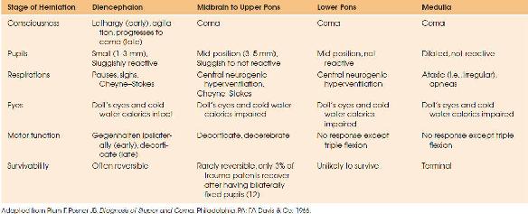 FIGURE 119.1 The rostrocaudal progression of ischemia contemporarily known as coning.